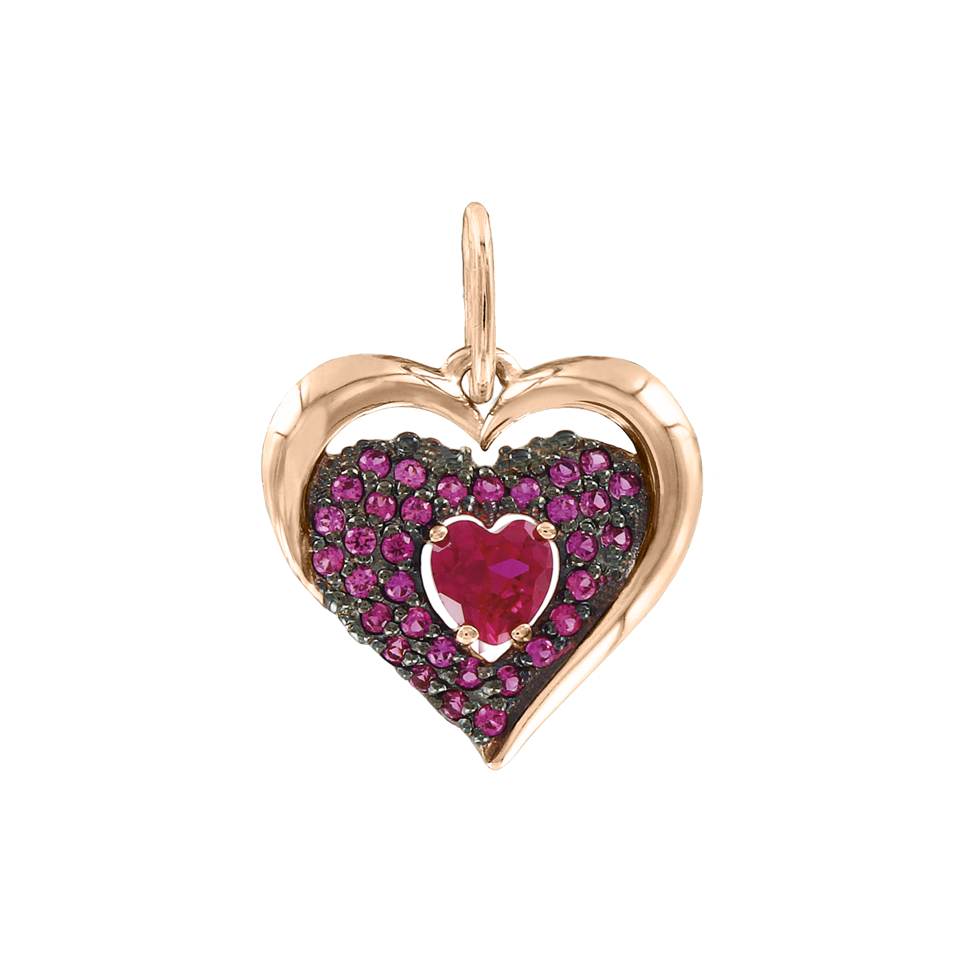 Ein romantischer Anhänger aus feinem Rotgold 585 in Form dreier ineinander verschlungener Herzen, besetzt mit funkelnden Zirkoniasteinen.