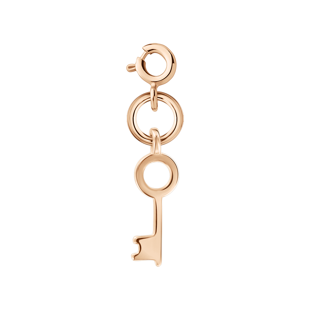 Verspielter Charm-Anhänger für Armbänder aus 585er Rotgold in Schlüsselform. Der Schlüssel symbolisiert Bindungen und eignet sich daher wunderbar als Geschenk für die Herzensdame.