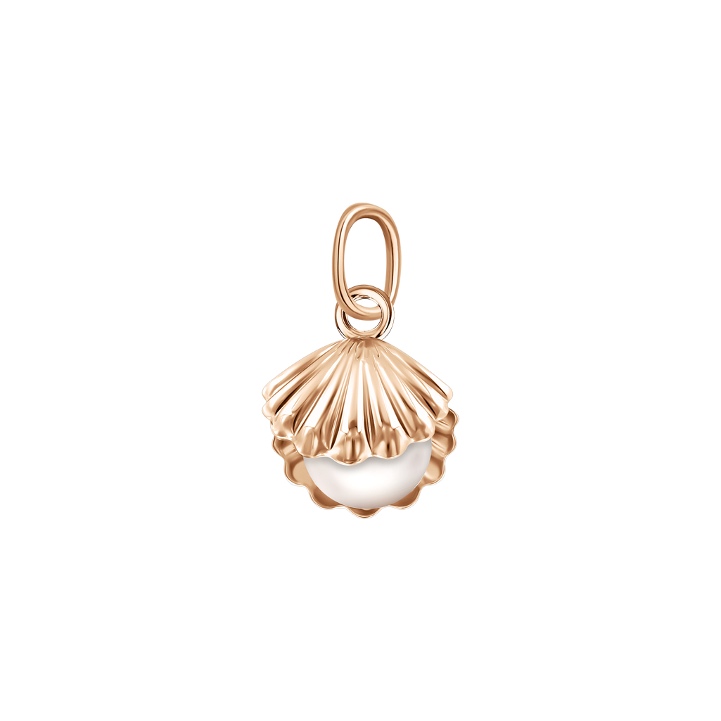 Wunderschöner Anhänger aus 585er Rotgold in Form einer Muschel, die eine schimmernde Perle umschließt.