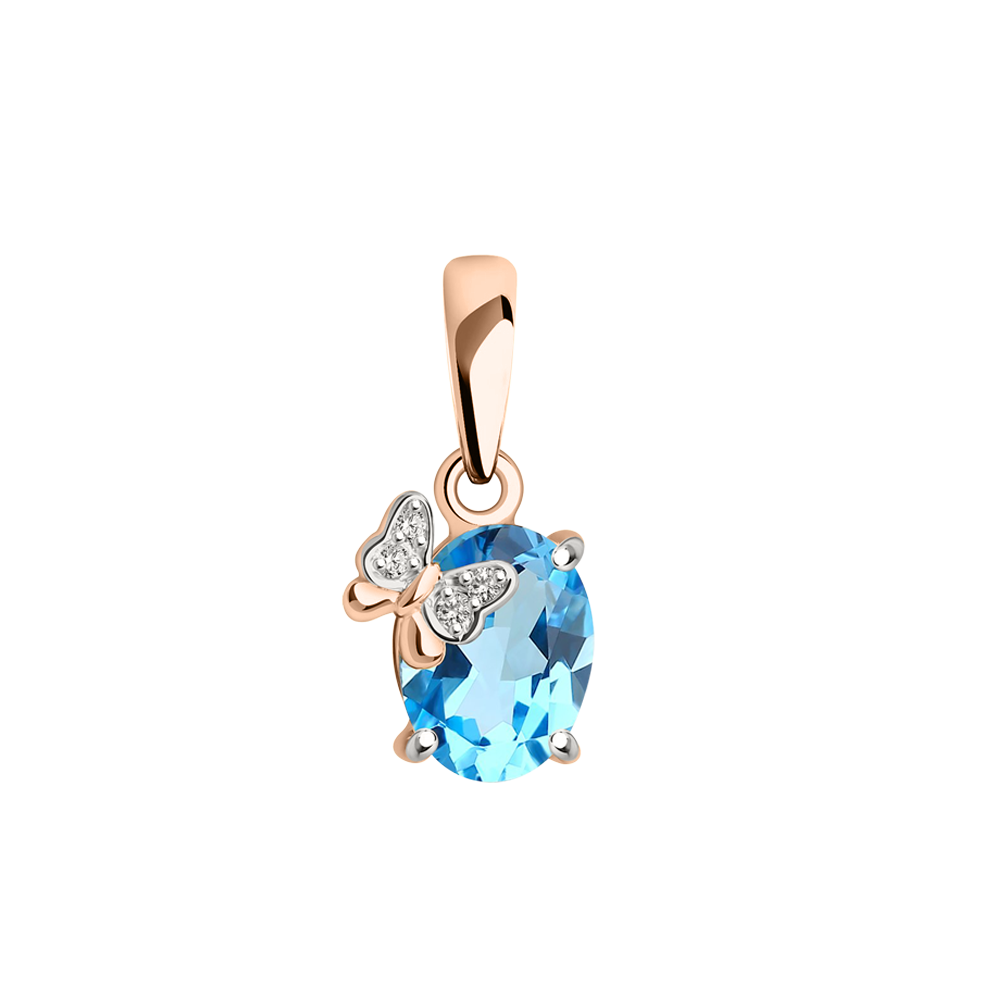 Charmanter Anhänger mit Schmetterling, Russisches Rotgold 585, mit Topas Swiss - Größe ca. 8x6 mm, und 4 Zirkonia, Breite ca. 8 mm, Höhe ca. 17 mm