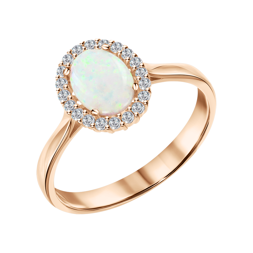 Der schimmernde Opal – Symbol für Reinheit und innere Harmonie – wird von funkelnden Zirkonia-Steinen umrahmt, die dem Ring Glanz und Tiefe verleihen.