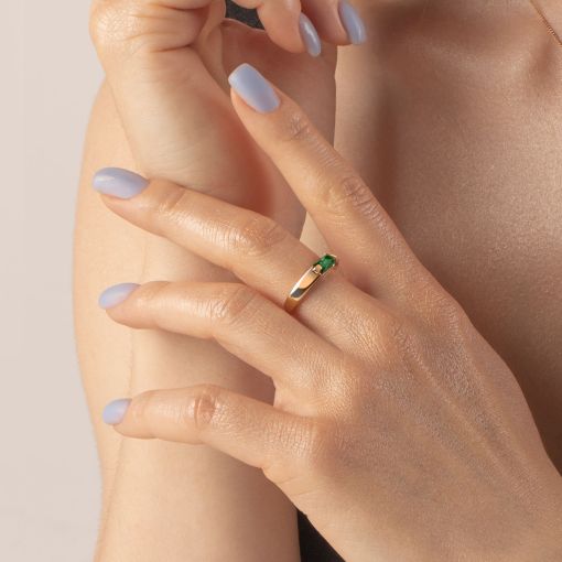 Die klare, moderne Form hebt den tiefen Grünton des Steins wunderschön hervor.