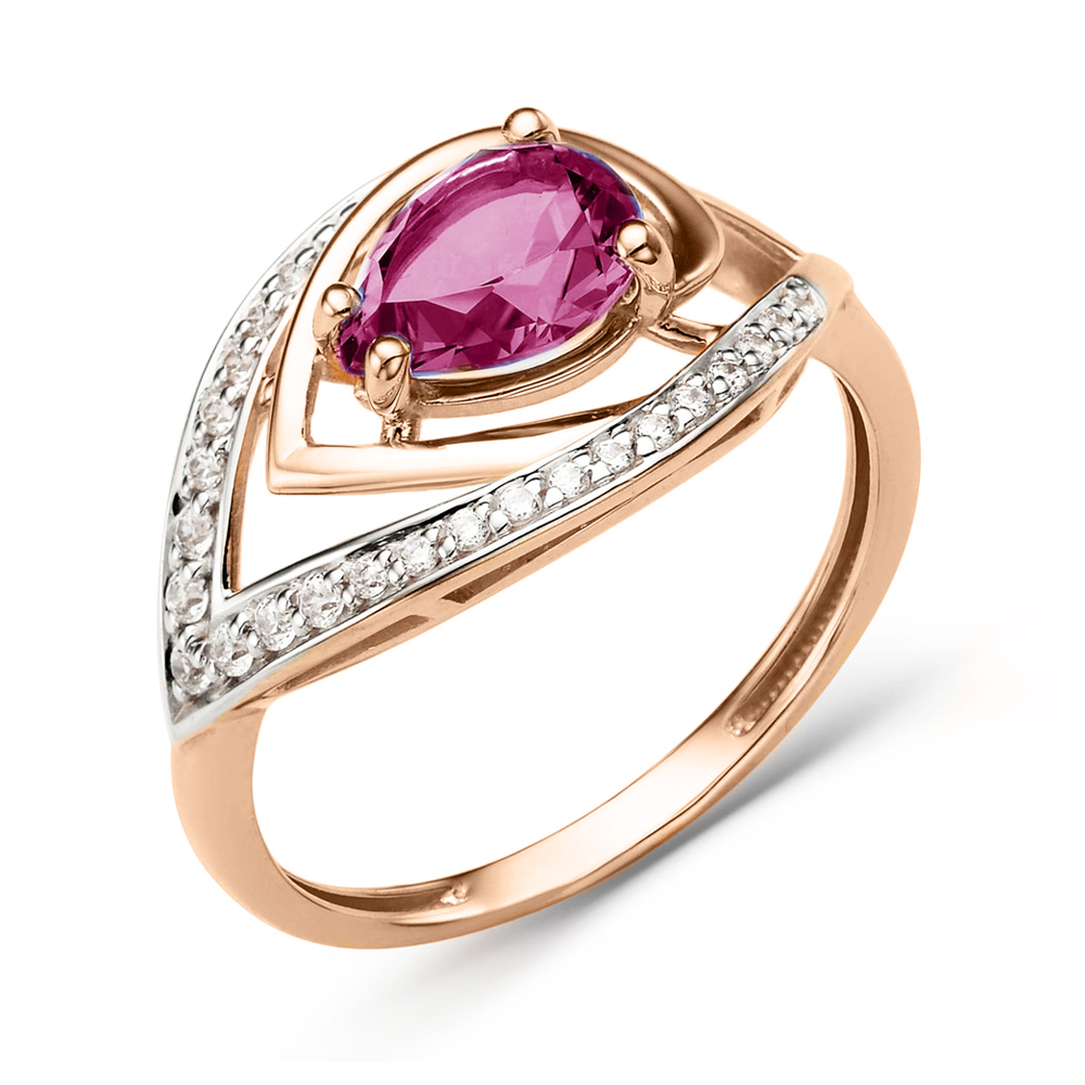 Eleganter Ring mit einem tropfenförmigen rot Korund, ergänzt durch funkelnde Zirkonia.