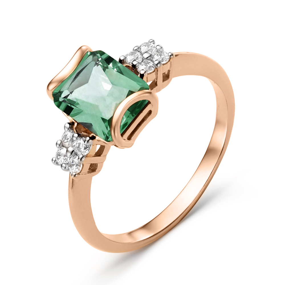 Eleganter Ring mit einem großen grünen Sitall-Stein von ca. 9x6 mm, ergänzt durch funkelnde Zirkonia.