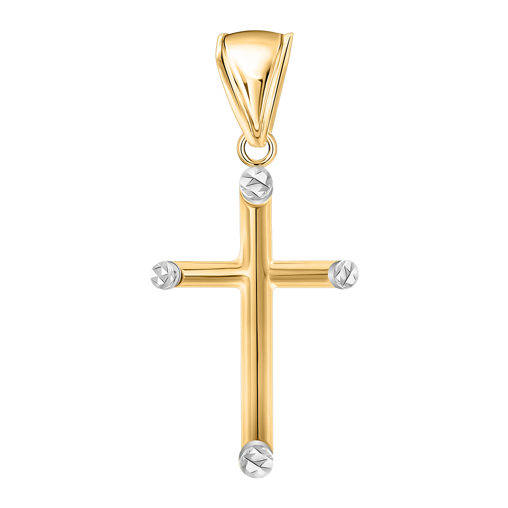 Die dezenten weißgoldfarbenen Akzente an den Kreuzenden verleihen dem klassischen Design eine moderne, funkelnde Note und bilden einen eleganten Kontrast zum warmen Goldton.