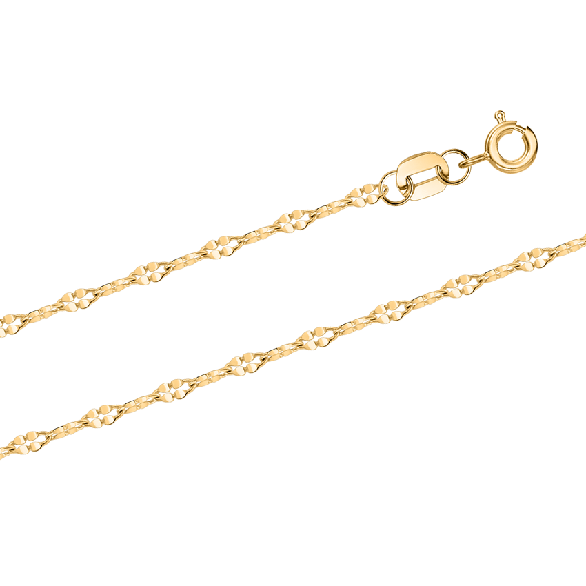 Bei einer Länge von 45 cm wiegt die Kette etwa 0,95 gr. und liegt besonders leicht und angenehm am Hals.