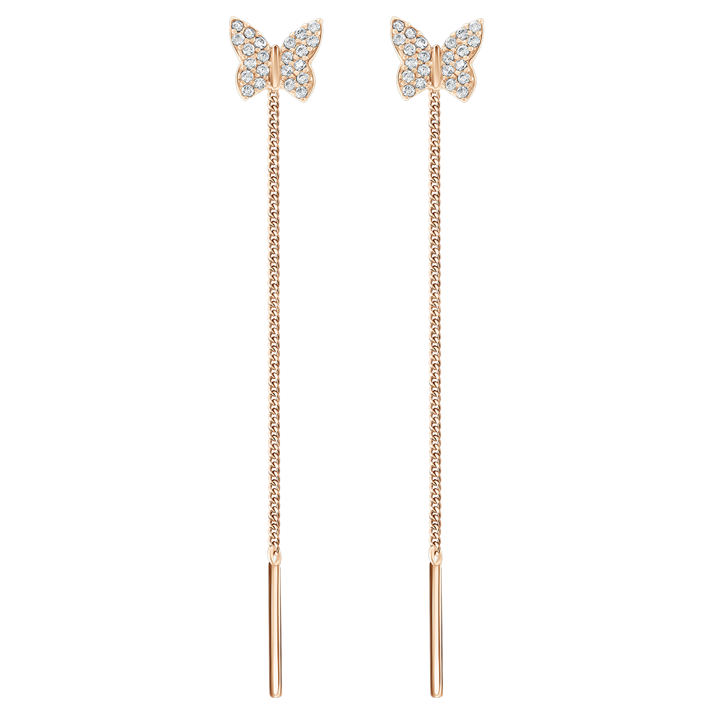 Zarte Durchzieher-Ohrhänger aus Russischem Rotgold 585, verziert mit funkelnden Zirkonia-Schmetterlingen.