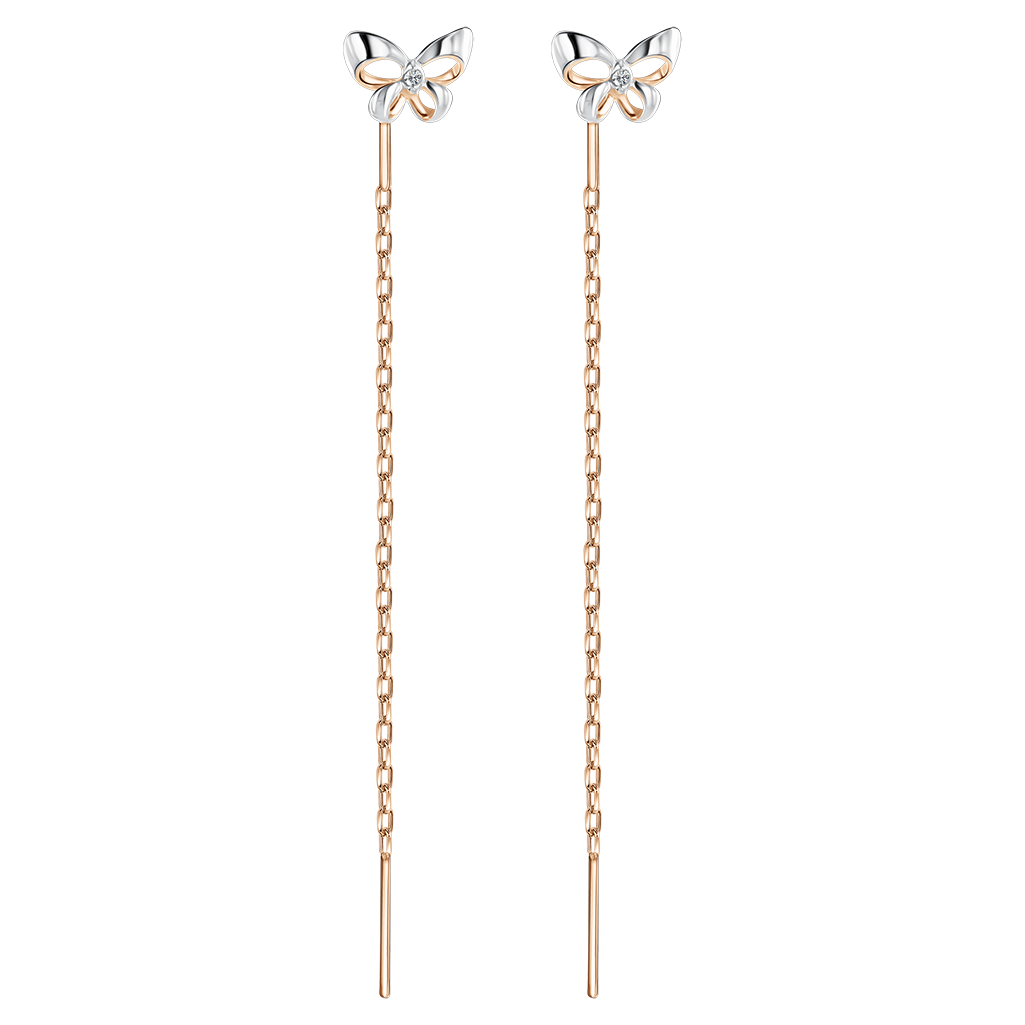 Feine Durchzieher-Ohrhänger aus Russischem Rotgold 585 mit zarten Schmetterlingsmotiven.