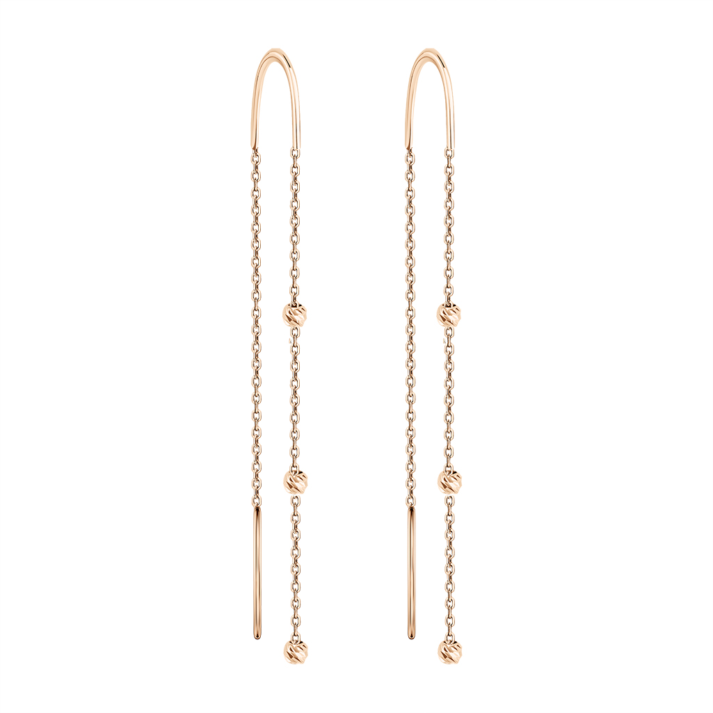 Zarte Durchzieher-Ohrringe aus Rotgold mit feinen Ketten und dekorativen Elementen. Ein leichtes und stilvolles Schmuckstück für einen eleganten Look.