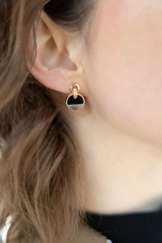 Schmuckset mit Onyx – bestehend aus Ohrringen und Anhänger in einem klaren, modernen Design. Der tiefschwarze Farbton des Steins betont die Formensprache und den edlen Charakter des Metalls. Die Schmuckstücke lassen sich einzeln oder als Set tragen.