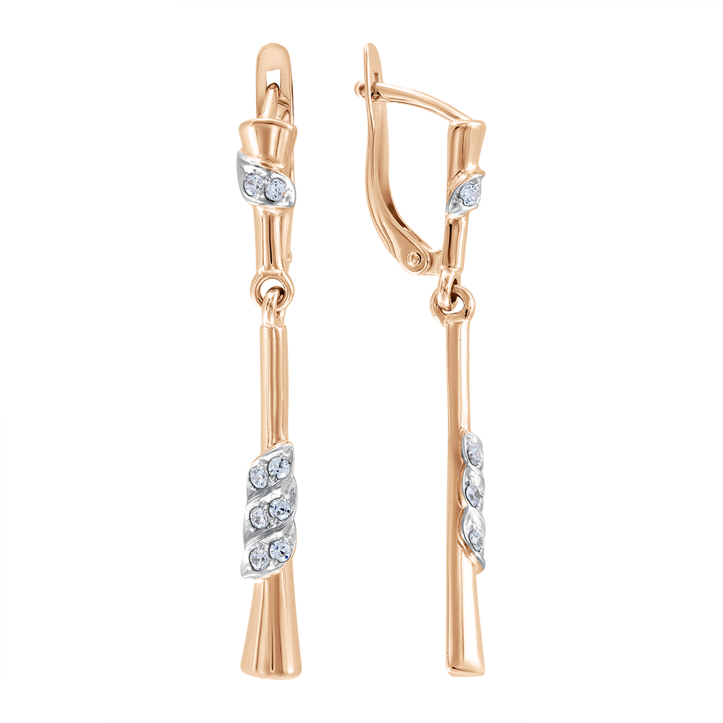 Ohrhänger, Russisches Rotgold 585, mit Zirkonia, Gewicht des Produkts ca. 4,3 gr., Höhe ca. 40 mm