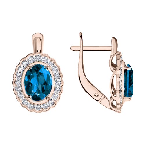 Entzückende Ohrhänger, Russisches Rotgold 585, mit Topas London Blue - Größe ca. 8x6 mm, und 40 Zirkonia, Höhe ca. 18 mm