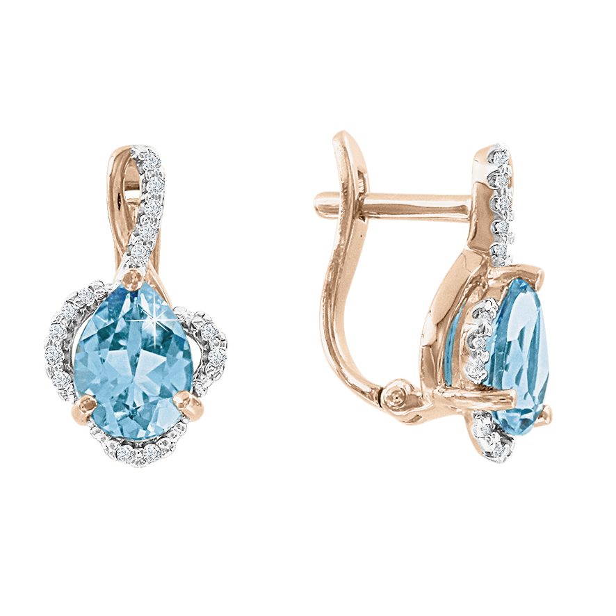 schöne Ohrhänger aus 585er Gold mit Zirkonia und blau Topas, Höhe ca. 15 mm