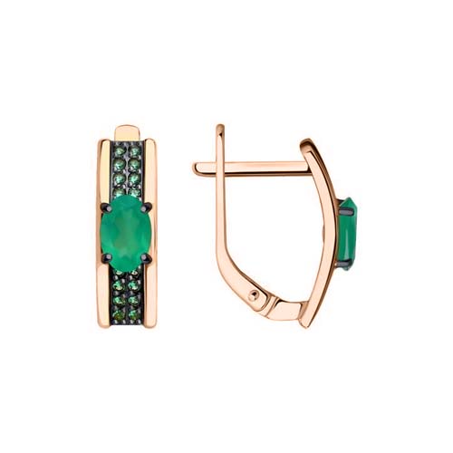 Ausgezeichnete Ohrhänger, Russisches Rotgold 585, mit grünem Achat - Größe 6x4 mm, und 32 grünem Zirkonia, Höhe ca. 17 mm.