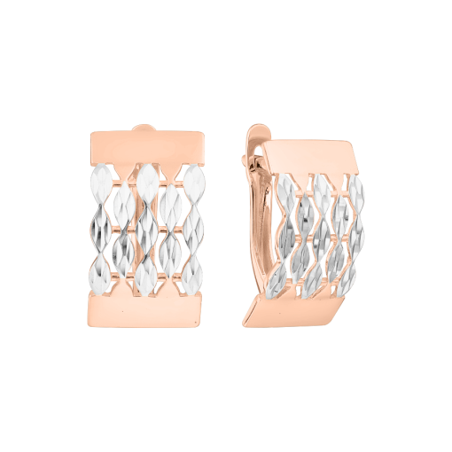 Diese edlen Ohrhänger aus russischem Rotgold 585 beeindrucken durch ihr raffiniertes Design und die faszinierende Lichtreflexion der rhodinierten Elemente.