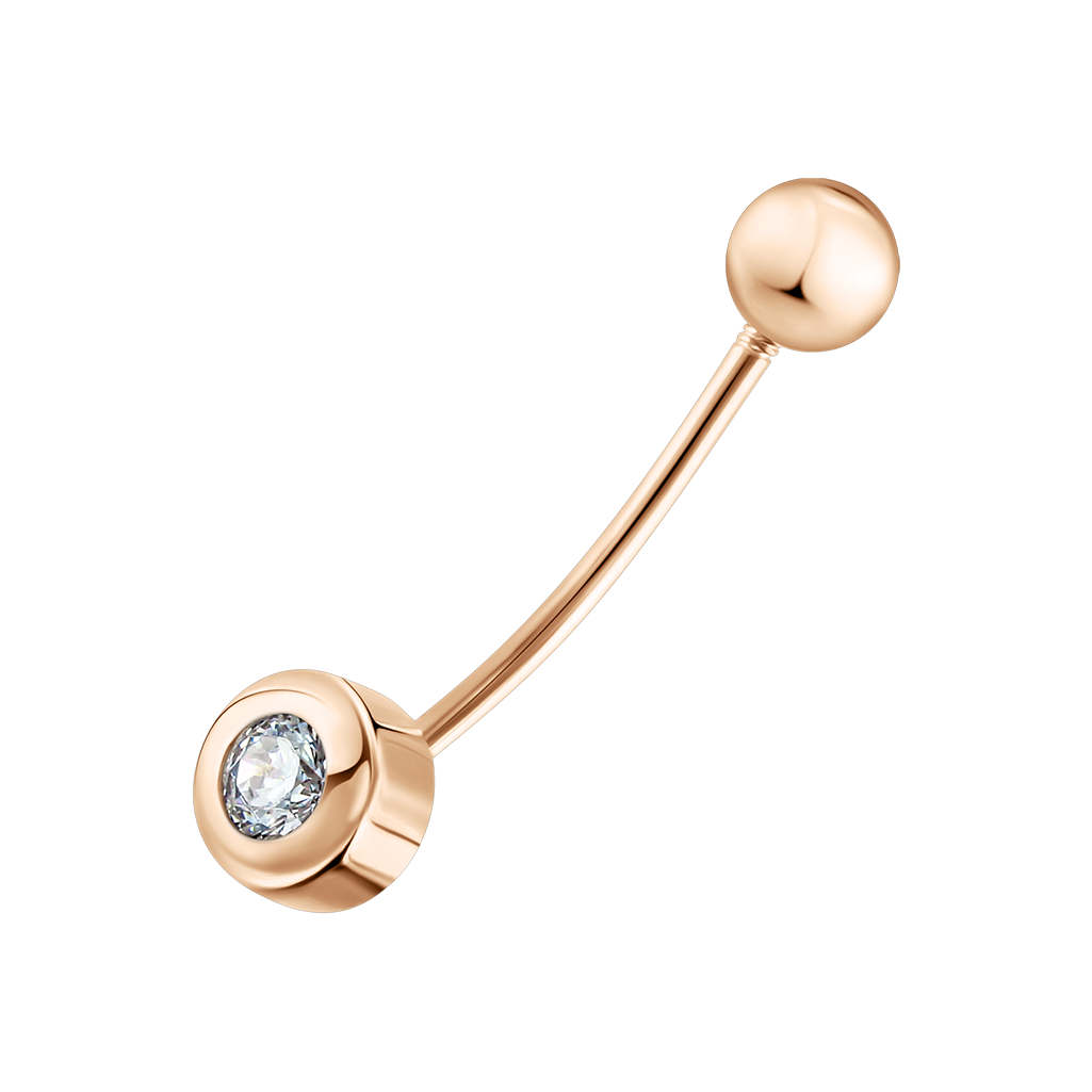 Modernes, elegantes Bauchnabelpiercing aus russischem Rotgold 585, besetzt mit einem funkelnden Zirkonia in glatter Fassung.
