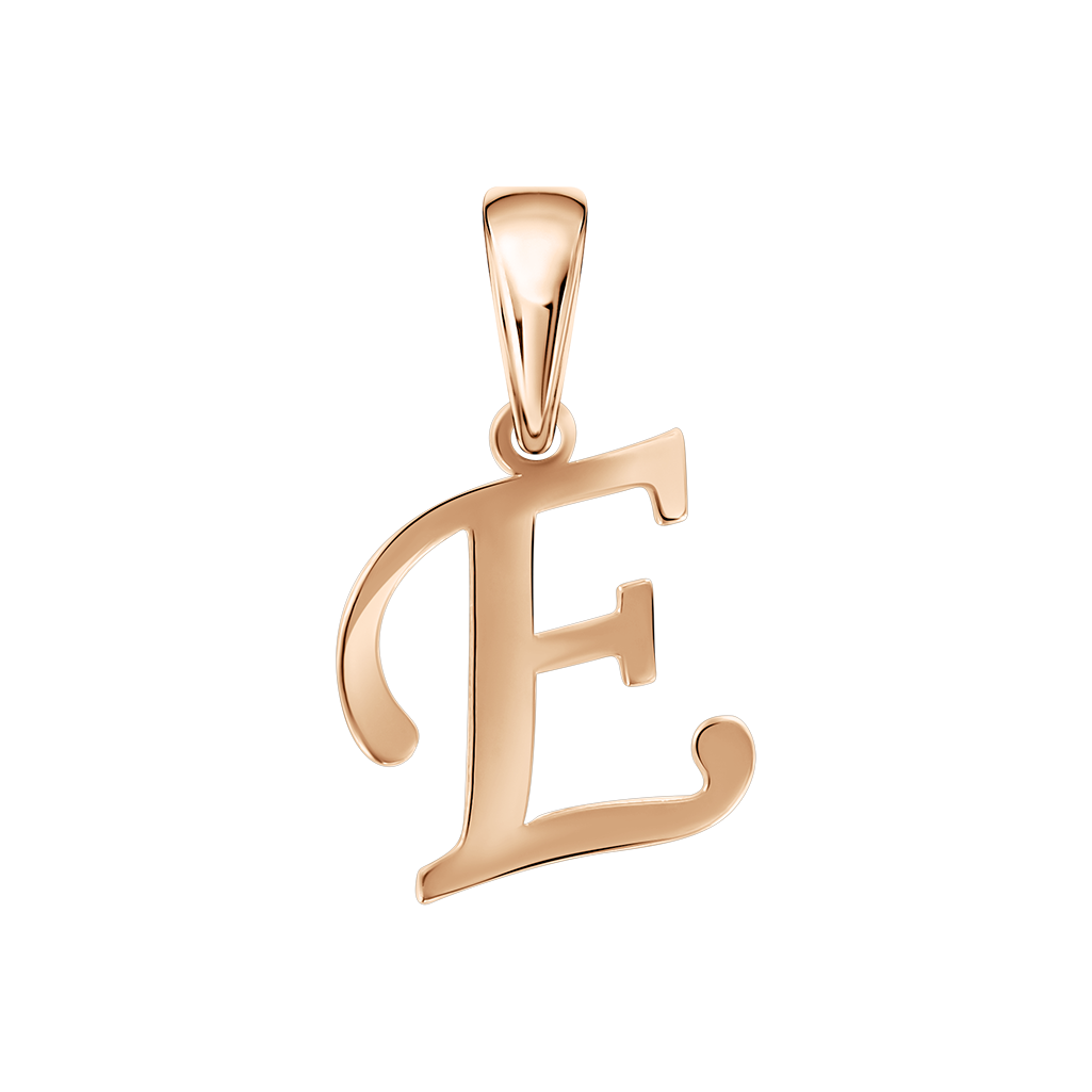 Ein stilvoller Buchstabenanhänger in Form des Buchstabens „E“, gefertigt aus feinem russischem Rotgold 585.