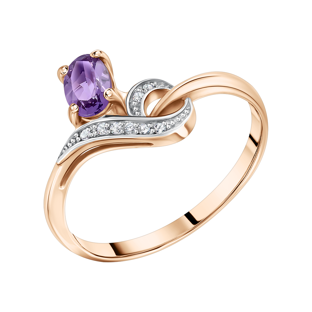 Ein zarter Damenring aus russischem Rotgold 585, besetzt mit einem violetten Amethyst - ca. 6×4 mm und funkelnden Zirkonia.