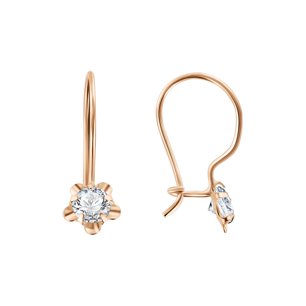 Zarte Kinderohrringe aus russischem Rotgold 585, gestaltet in Form einer kleinen Blüte – Symbol für Reinheit und Lebensfreude.