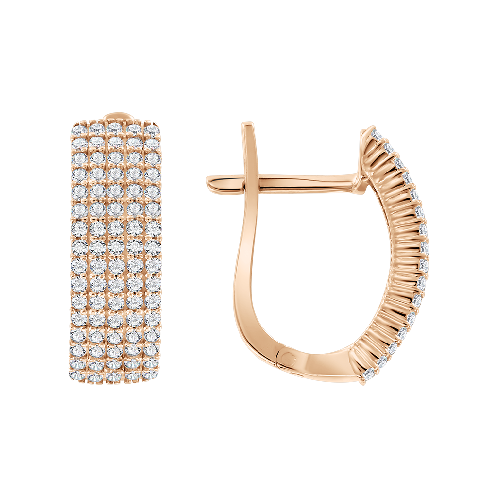 Elegante Ohrhänger aus russischem Rotgold 585, besetzt mit funkelnden Reihen von Zirkonia.