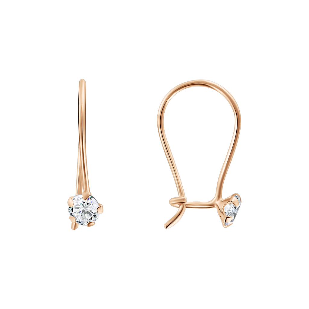 Zarte Kinder-Ohrringe aus russischem Rotgold 585, besetzt mit funkelnden Zirkonia-Steinen in klassischer Fassung.