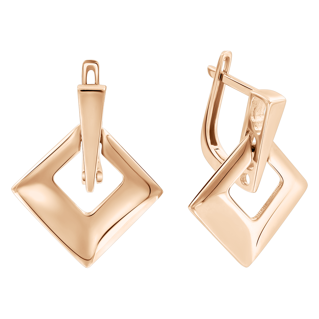 Moderne Ohrhänger aus russischem Rotgold 585 mit klaren Linien und markanter geometrischer Form.