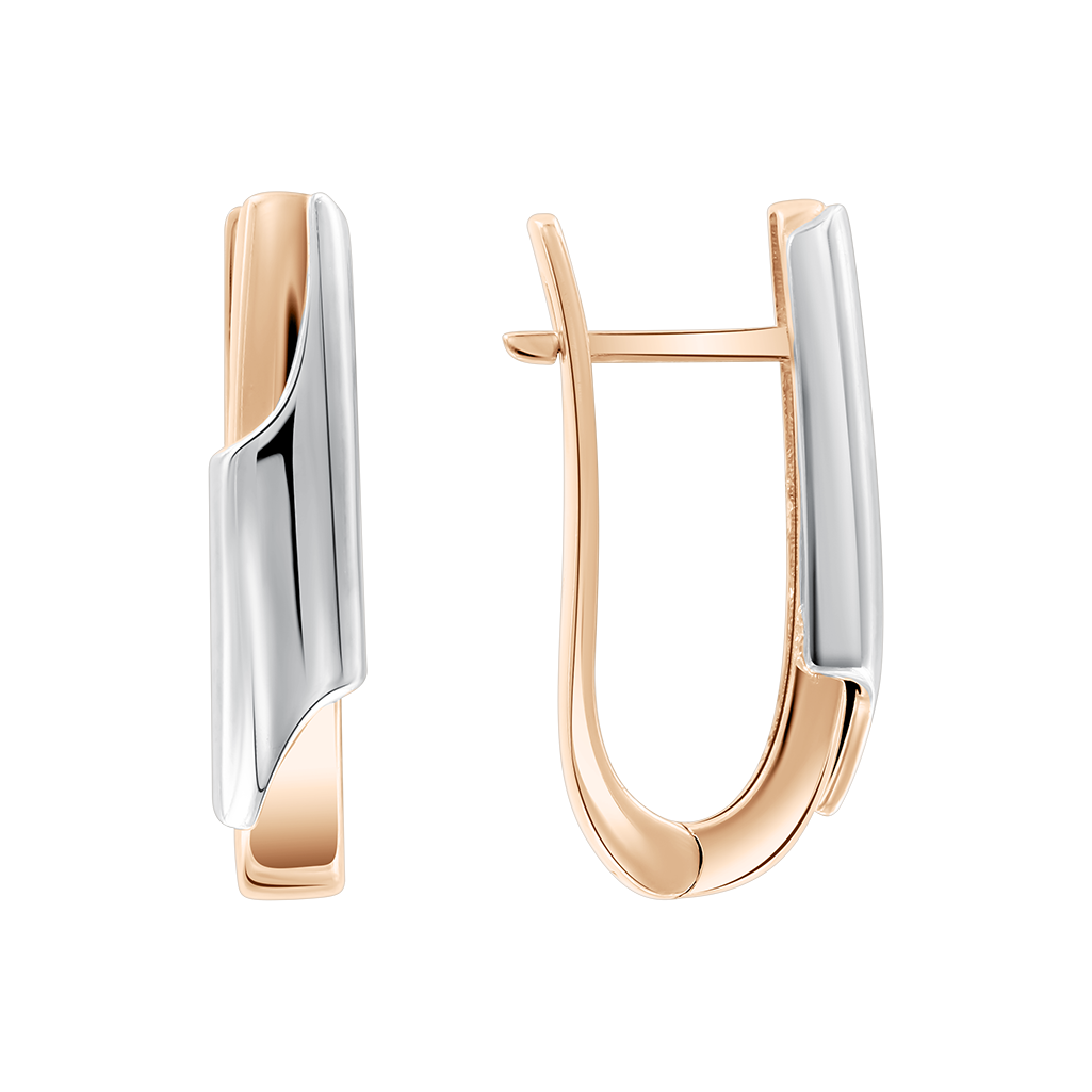 Moderne Ohrhänger aus russischem Rotgold 585 mit harmonischem Kontrast aus warmem Rotgold und kühlem Weißton.