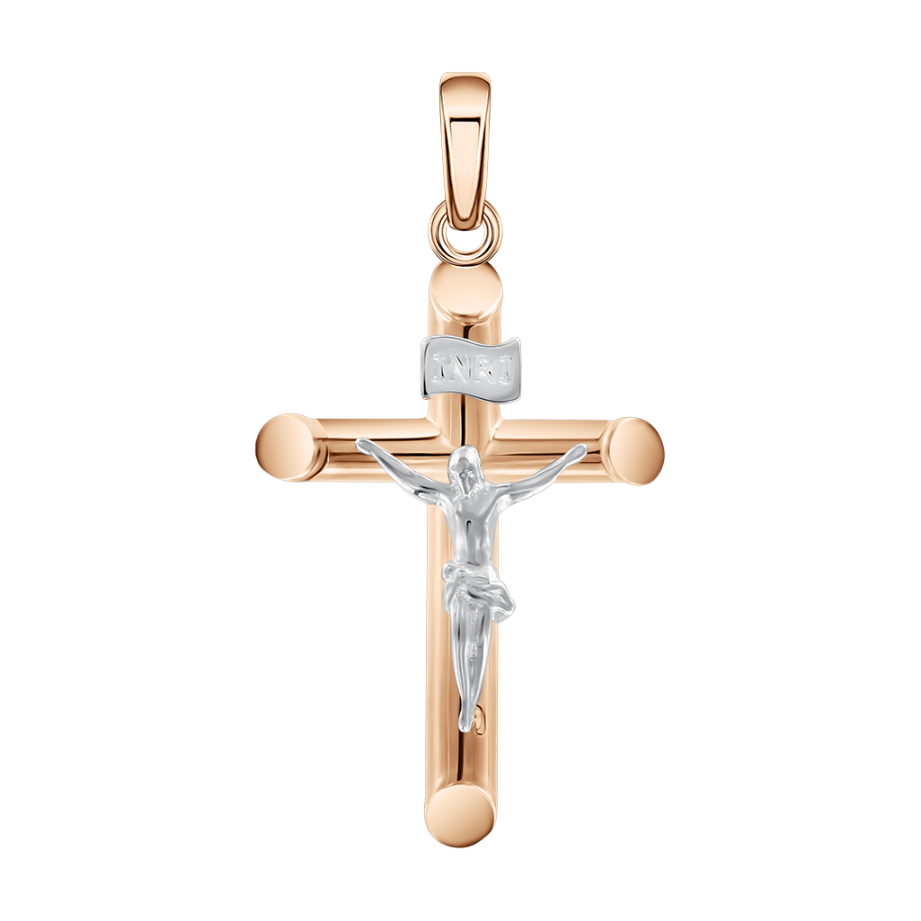 Kreuz mit Korpus, gefertigt aus russischem Rotgold 585, Höhe ca. 27 mm.