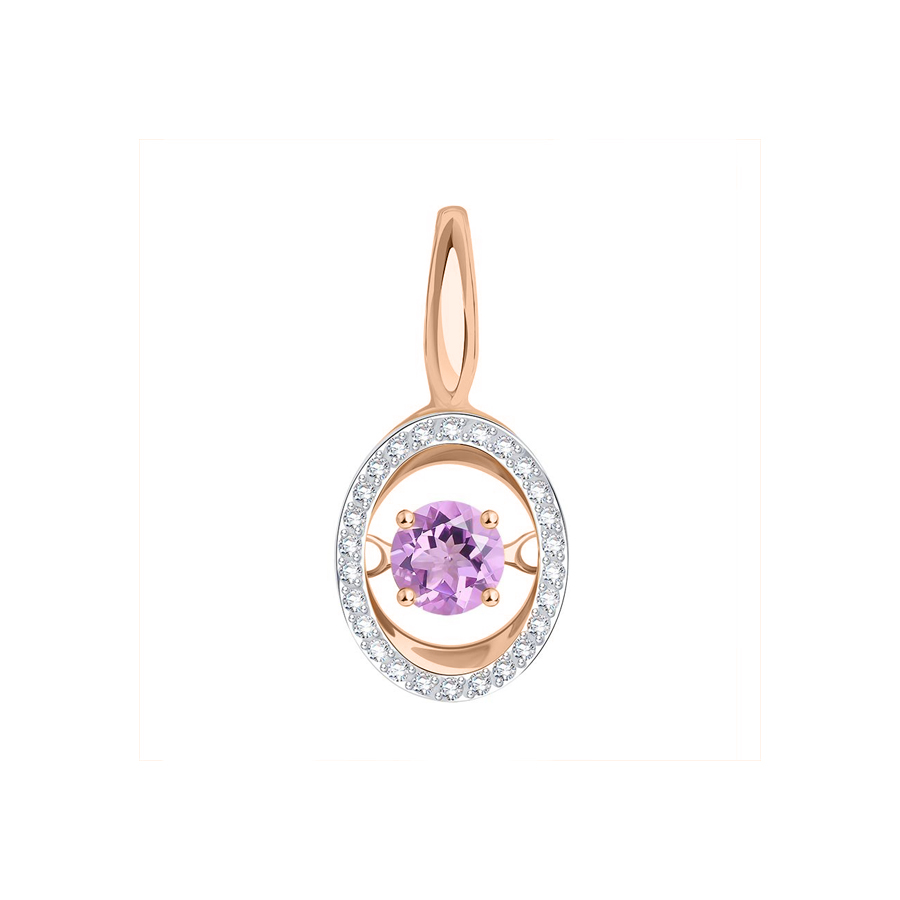 Moderner Anhänger, Russisches Rotgold 585, mit Amethyst und Zirkonia, Höhe ca. 20 mm