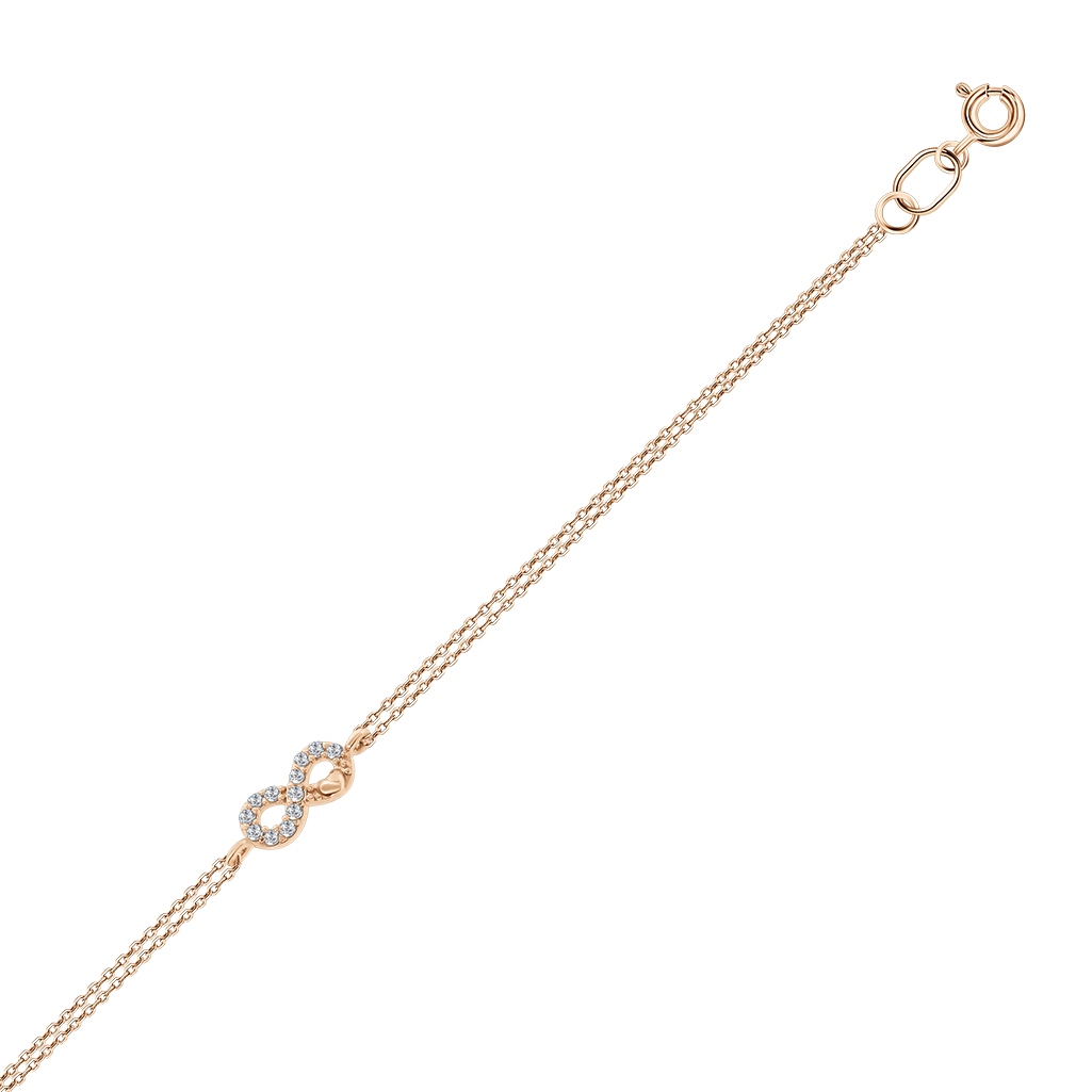 Zartes Armband aus Rotgold mit Unendlichkeitssymbol, verziert mit funkelnden Zirkonia.