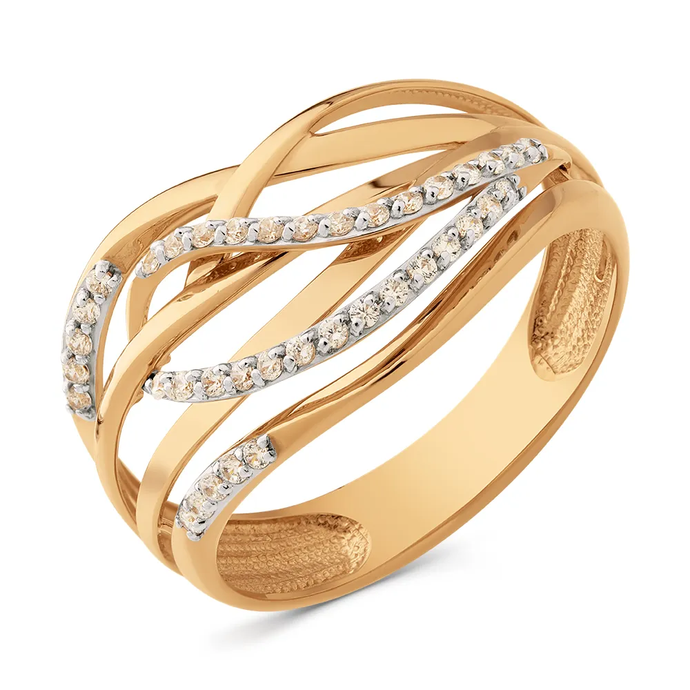 Damenring, Russisches Rotgold 585, mit Zirkonia, Breite ca. 11 mm