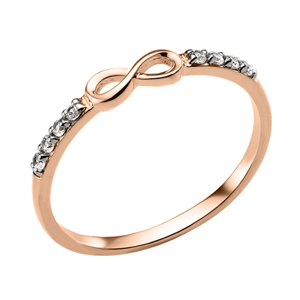 Zarter Damenring aus russischem Rotgold 585 mit dem Unendlichkeitszeichen und funkelnden Zirkonia.