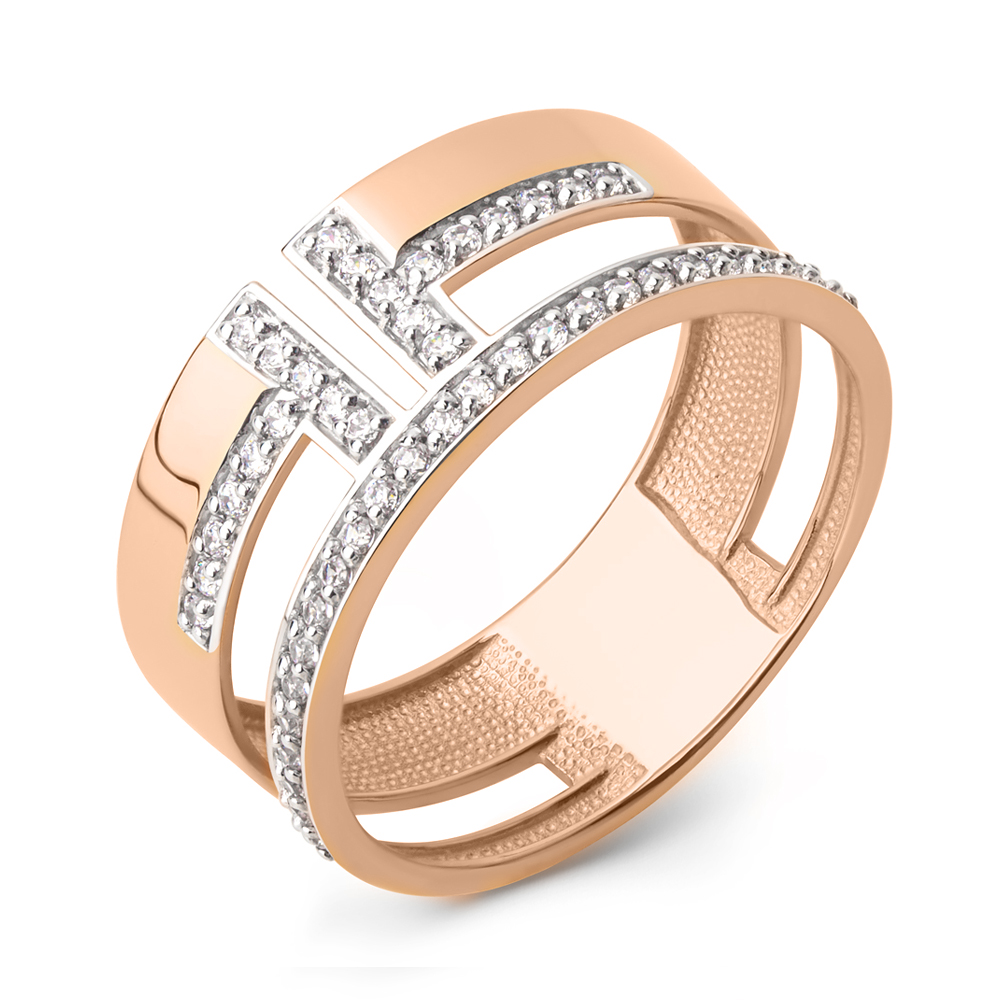 Stilvoller Damenring aus russischem Rotgold 585 mit modernem, geometrischem Design.