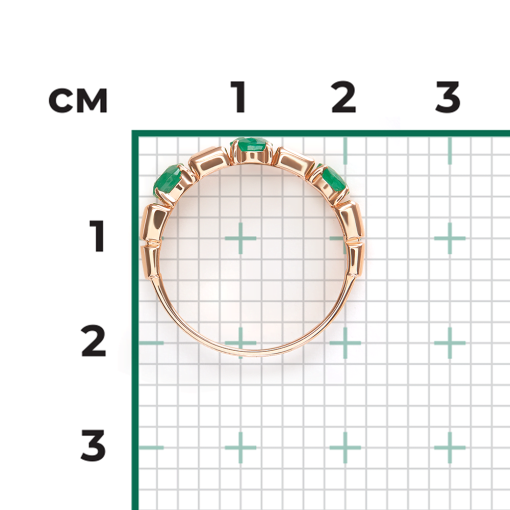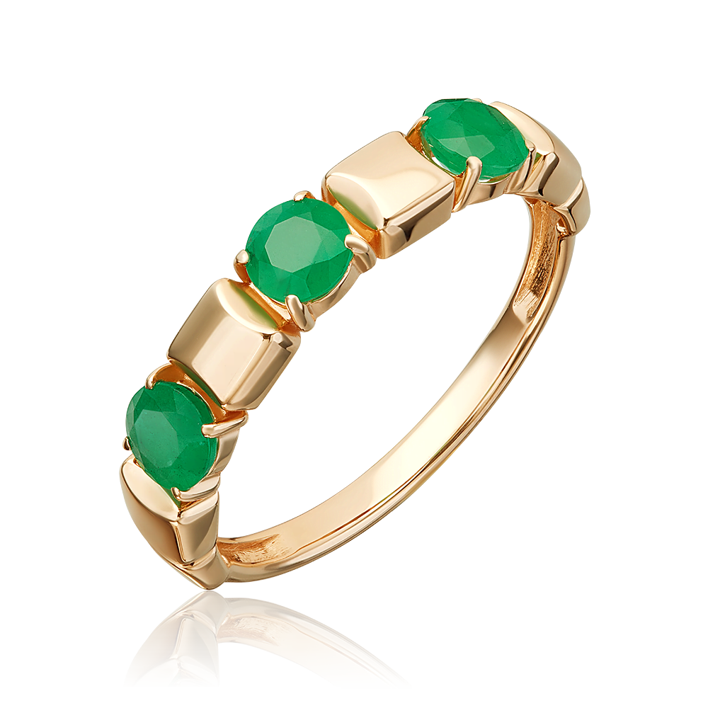 Damenring, Russisches Rotgold 585, mit grünen Smaragden - Durchmesser des Steins ca. 4-5 mm