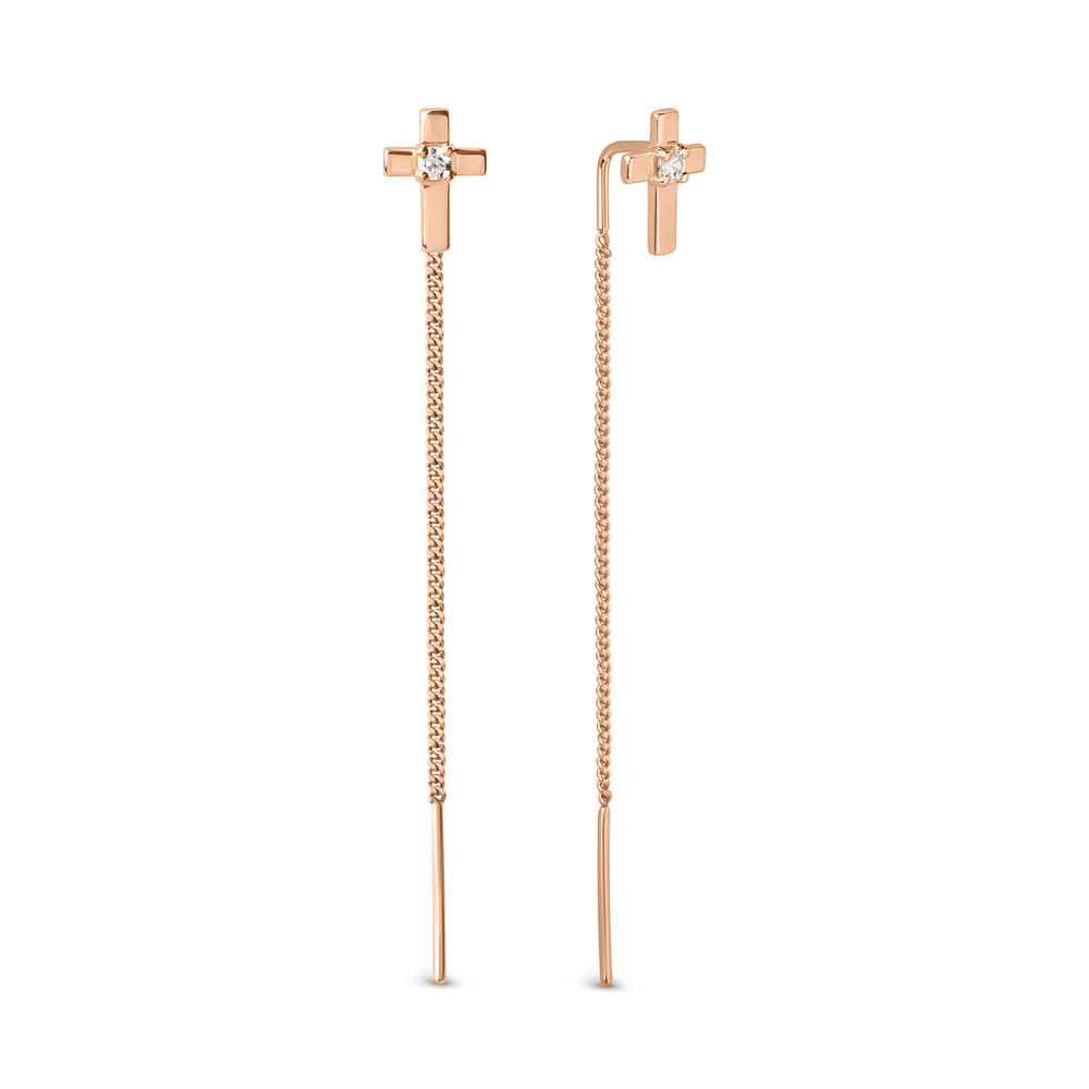 Lange Durchzieh-Ohrringe mit einem zarten Kreuz und einem funkelnden Zirkonia in der Mitte. Ein leichtes, feminines und modernes Schmuckstück, das den Look dezent ergänzt und zu jedem Anlass passt.