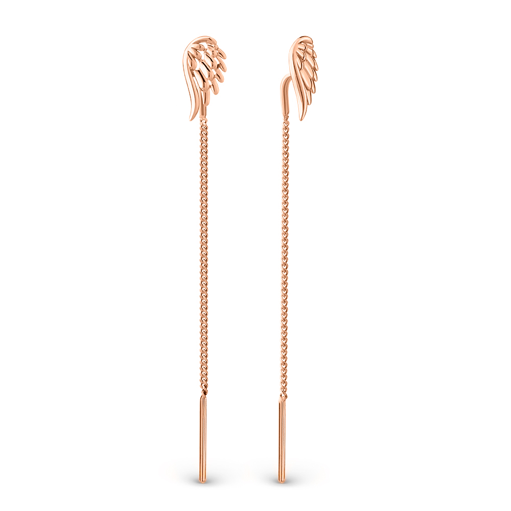 Feine Durchzieher-Ohrringe aus russischem Rotgold 585 mit zarten Anhängern in Form von Engelsflügeln. Leicht, elegant und feminin – ein schöner Akzent für jeden Look.