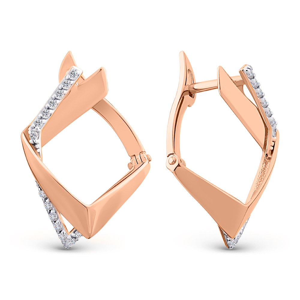 Stilvolle Ohrringe aus russischem Rotgold 585 mit modernem, geometrischem Design.