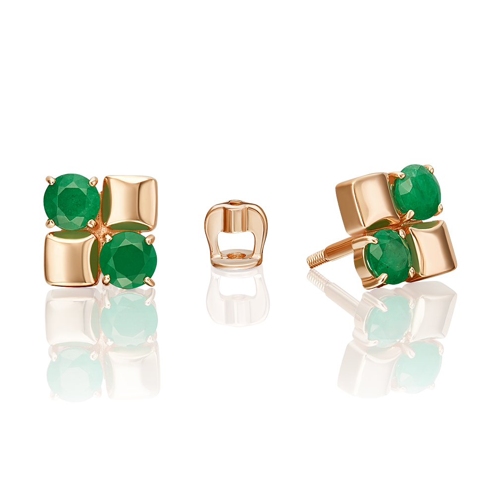 Feine Ohrstecker aus 585er Rotgold, besetzt mit zwei intensiv grünen Smaragden im Rundschliff in klassischer Krappenfassung.