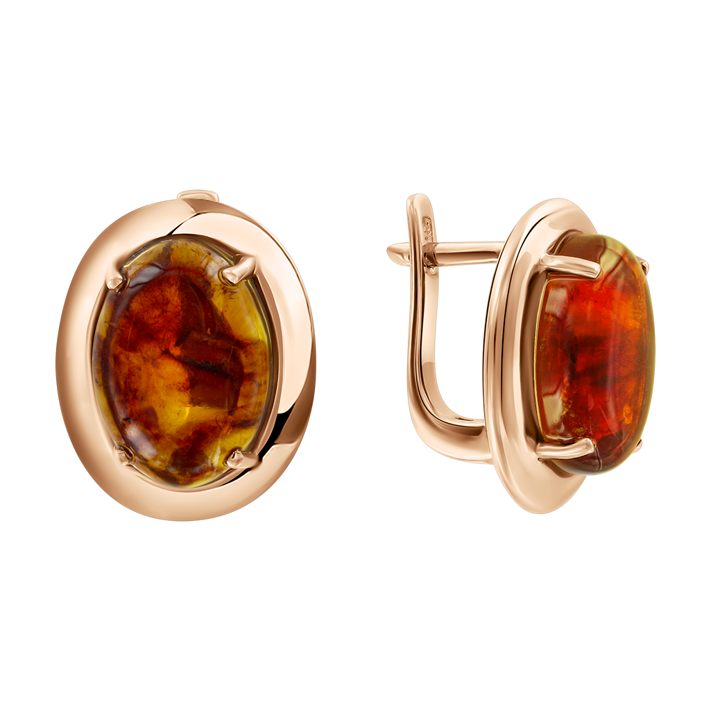 Diese Ohrringe vereinen die warme Ausstrahlung von Bernstein mit der edlen Glätte von Rotgold.