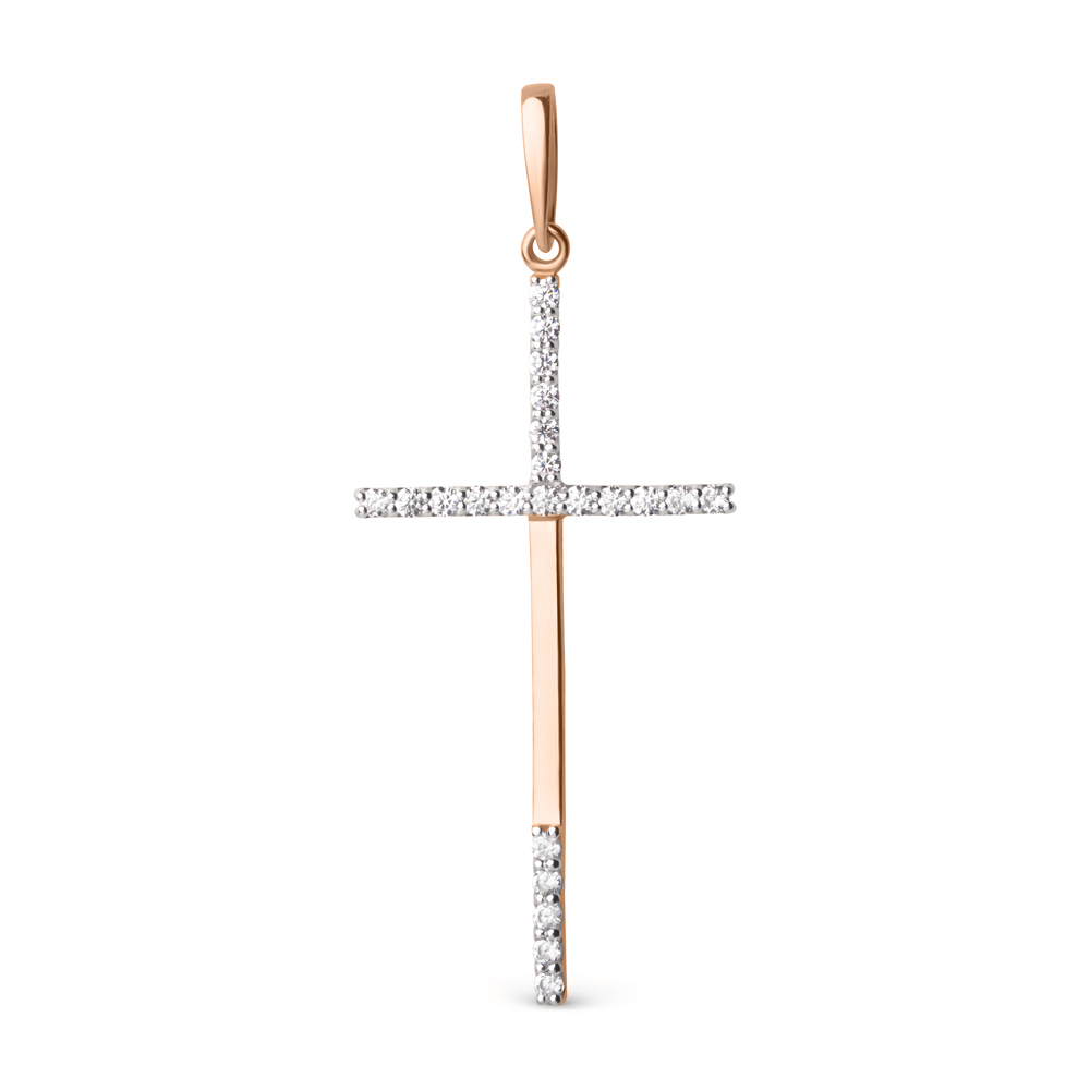 Ein eindrucksvoller Kreuzanhänger aus russischem Rotgold 585 – ein modernes und zugleich filigranes Schmuckstück, das mit seiner minimalistischen Eleganz begeistert. Der vertikale Balken besteht aus glatt poliertem Gold und ist teilweise mit funkelnden Zirkoniasteinen besetzt, während der horizontale Steg vollständig mit strahlenden Zirkonia verziert ist. Dieses Zusammenspiel verschiedener Texturen schafft einen ausdrucksstarken Kontrast und verleiht dem Design eine besonders leichte und luftige Anmutung. Mit einer Höhe von ca. 45 mm präsentiert sich der Anhänger in einem stilvollen, verlängerten Format, das die Halslinie elegant betont und jedem Look eine grafische Raffinesse verleiht. Ein perfektes Schmuckstück für alle, die die Verbindung von Symbolkraft und modernem Design zu schätzen wissen – geeignet sowohl für den Alltag als auch für besondere Anlässe.