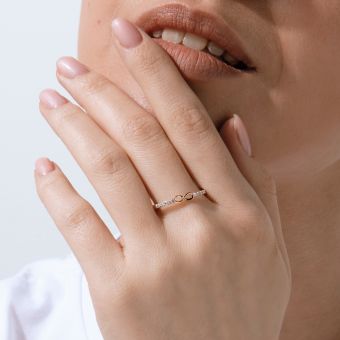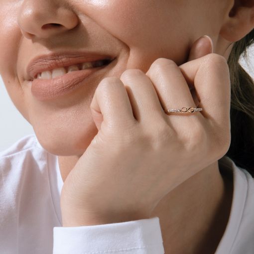 Zarter Damenring aus russischem Rotgold 585 mit dem Unendlichkeitszeichen und funkelnden Zirkonia.