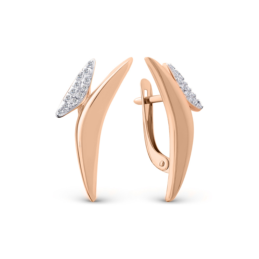 Diese eleganten Ohrhänger aus russischem Rotgold 585 begeistern mit einer sanft geschwungenen Form, die an ein zartes Blütenblatt erinnert.