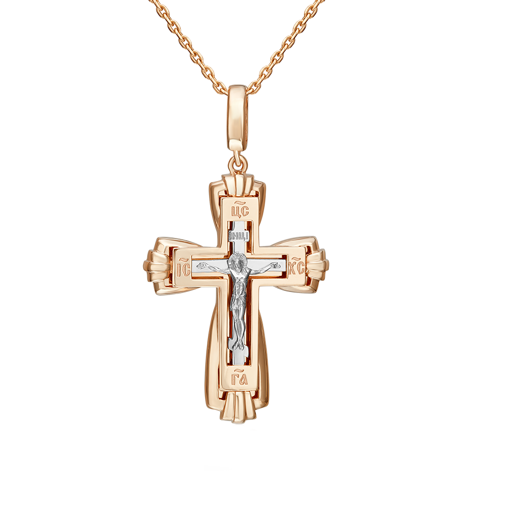 Attraktiver Anhänger - Kreuz, Russisches Rot- / Weißgold 585, Höhe ca. 40 mm
