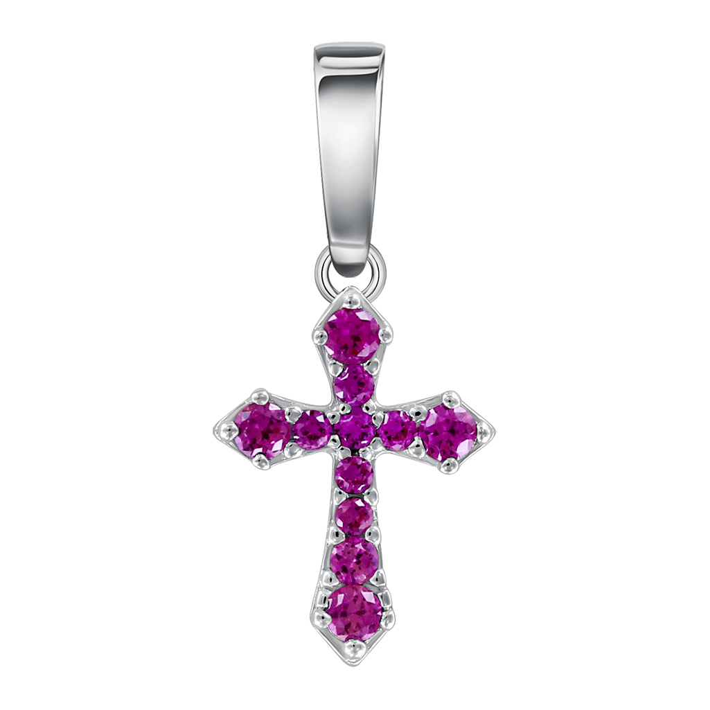 Eleganter Anhänger aus Silber 925 in Kreuzform, verziert mit funkelnden purpurroten Zirkonia.