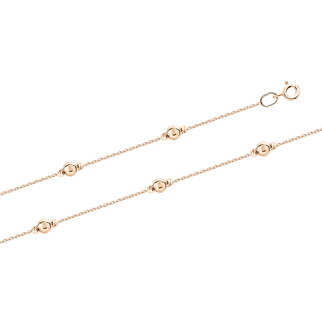 Ein zartes Armband aus Russischem Rotgold 585 mit feinen, gleichmäßig angeordneten Goldkügelchen. Das filigrane Design verleiht dem Schmuckstück Leichtigkeit und feminine Eleganz.