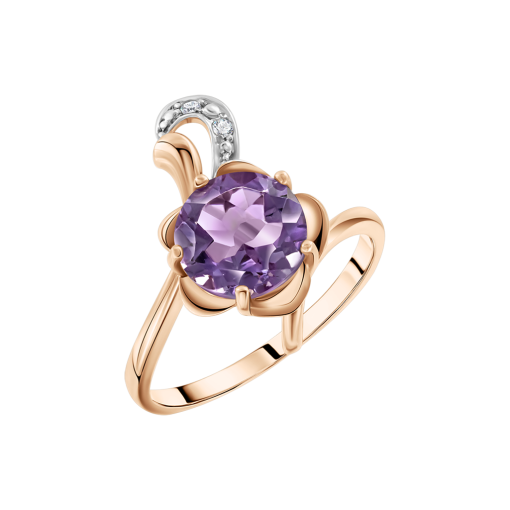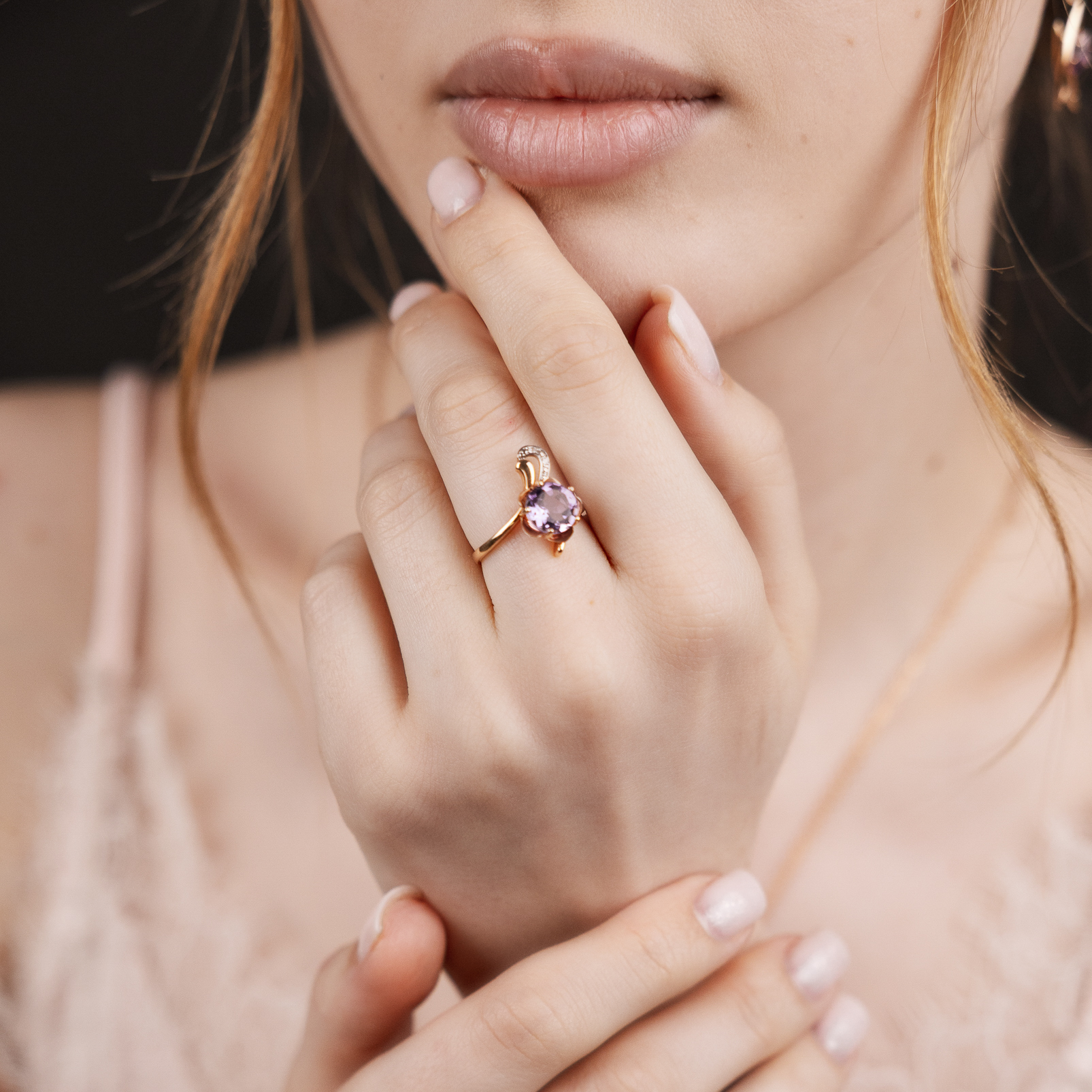 Zarter Damenring aus Rotgold mit funkelndem Amethyst und Zirkonia.