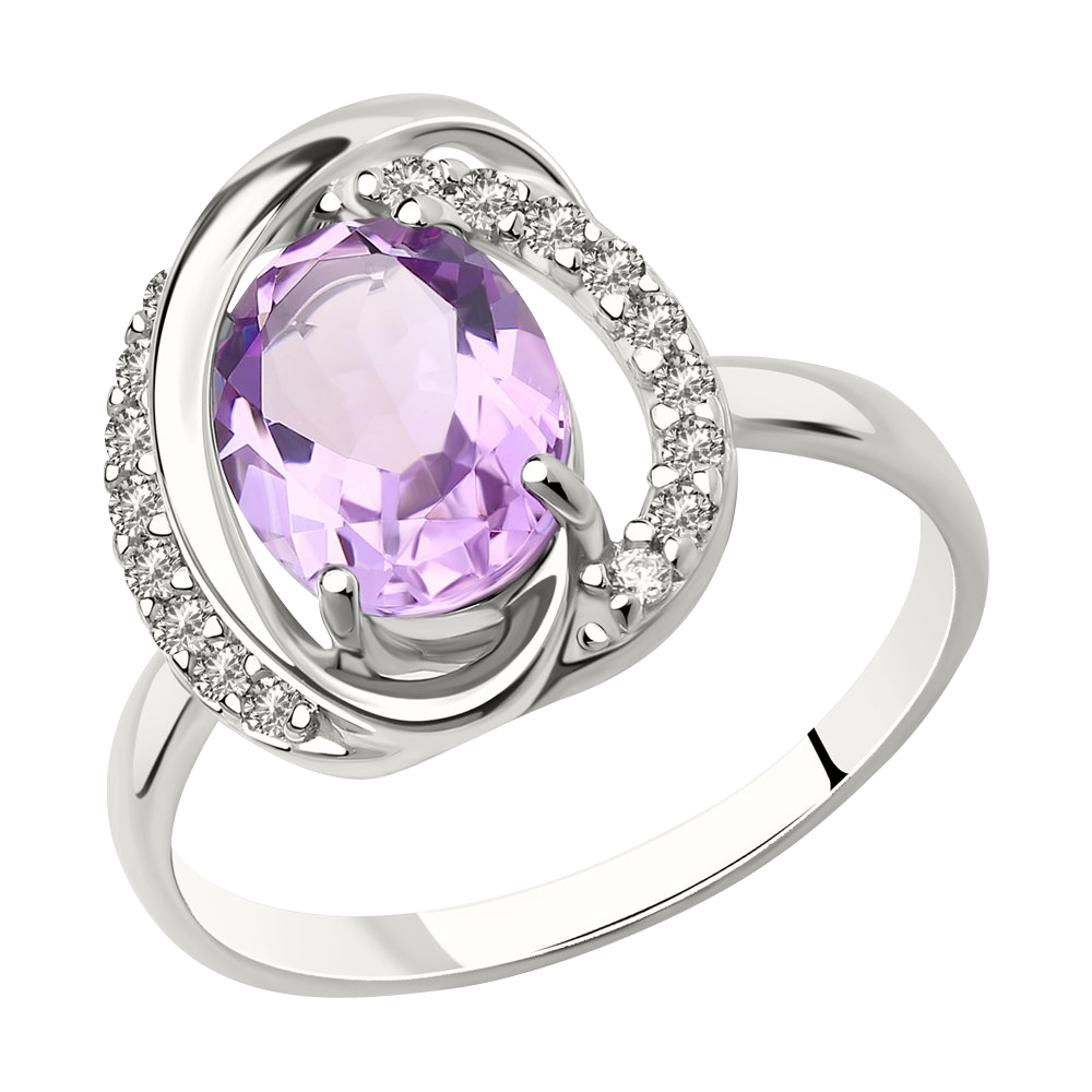 Wunderbarer Damenring in Silber 925, mit Amethyst - Größe ca. 9x7 mm, und 17 Zirkonia, Frontbreite ca. 14 mm