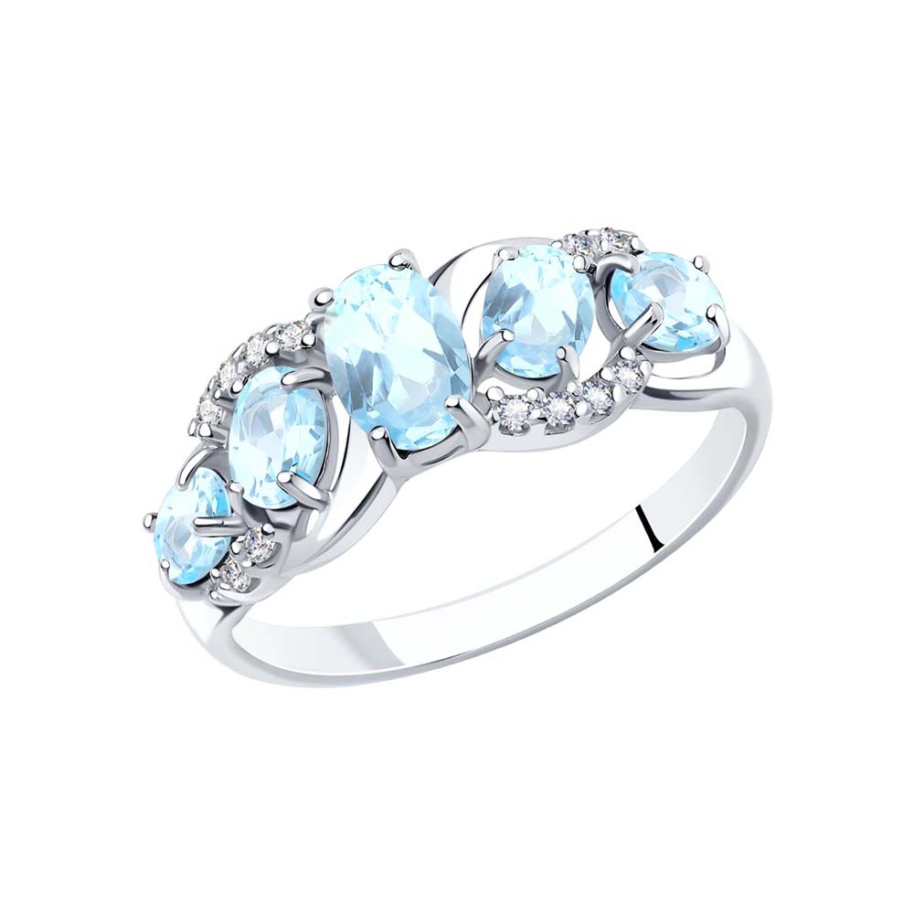 Charmanter Damenring aus Silber 925, mit 5 Topas Sky - Größe ca. 6x4 mm und 4x3 mm, und 12 Zirkonia, Frontbreite ca. 7 mm