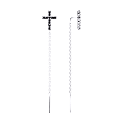 Durchzieher-Ohrringe aus 925er Silber mit Kreuz und Zirkonia, Höhe ca. 66 mm - sind ein modernes Schmuckstück mit symbolischer Note.