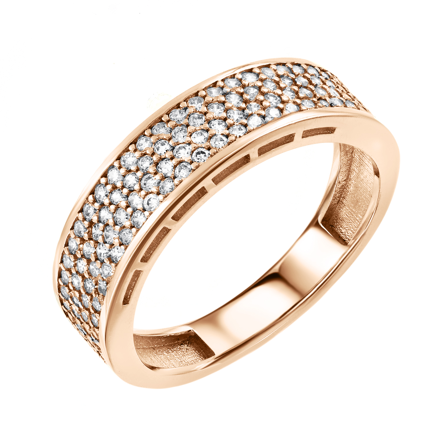 *** Bei Bestellung von Ringgrößen größer als 19,5 mm oder kleiner als 16 mm kontaktiren Sie uns telefonisch. Breiter Ring aus 585er Rotgold mit einer dichten Pavé-Besetzung aus funkelnden Zirkoniasteinen. Die Vielzahl kleiner Steine sorgt für ein intensives, schimmerndes Leuchten. Ein zeitloses Schmuckstück, das sowohl im Alltag als auch zu besonderen Anlässen stilvoll wirkt.